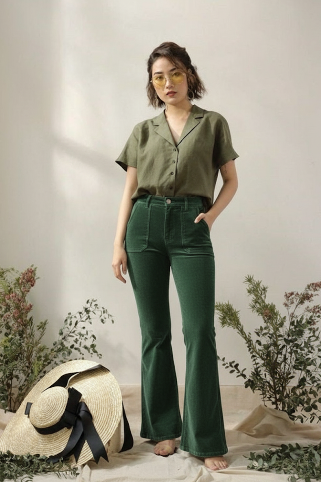 Women’s Forest Green Corduroy Wide-Leg Pants - Ecowears.pk