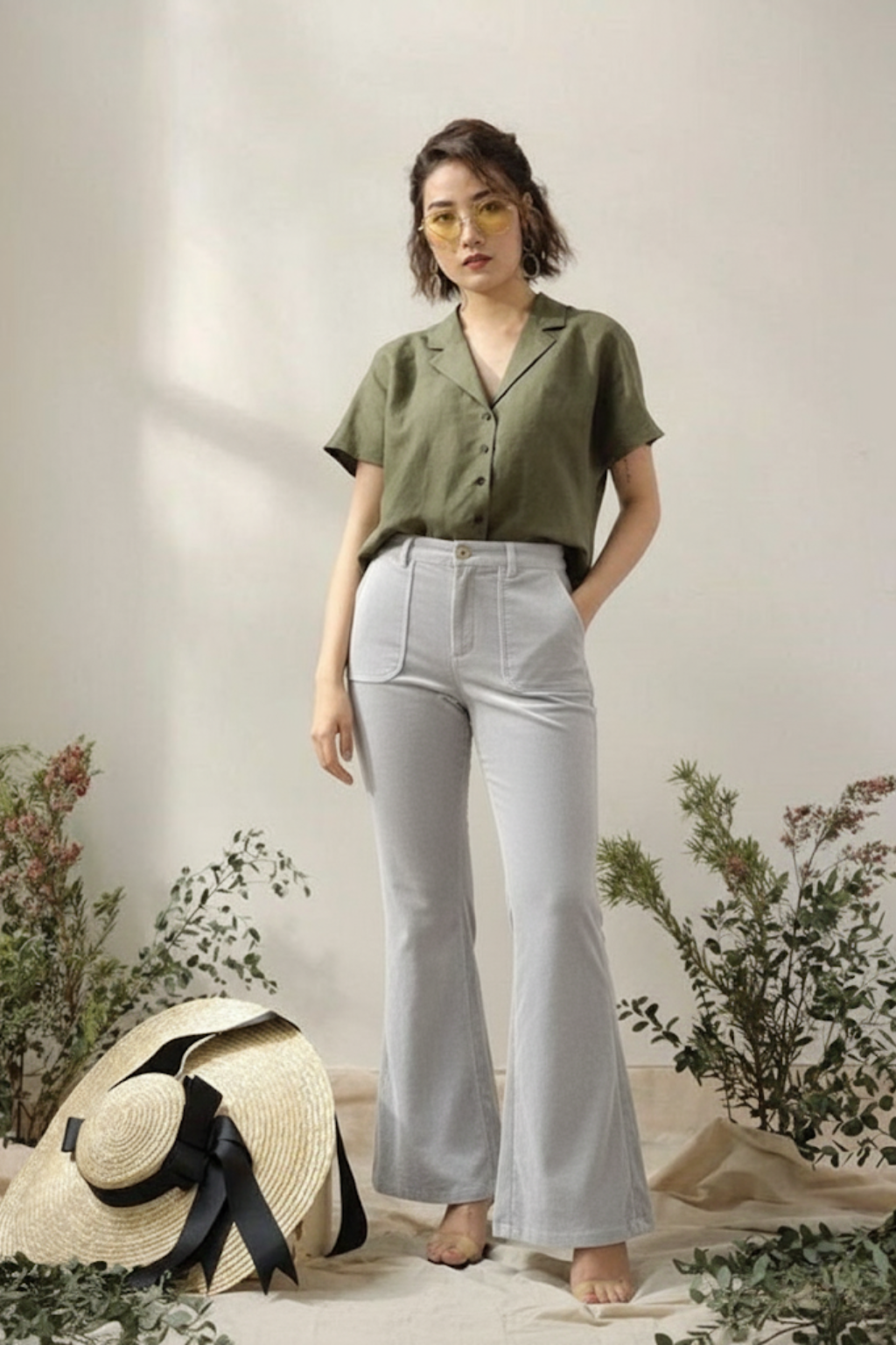Crafted from soft corduroy, these grey flared pants combine comfort with a modern edge. The high-waist fit offers a flattering shape, while the flared leg adds stylish movement. With ribbed texture and neat tailoring, they are designed for durability and all-day wear. Easy to pair with blouses, knits, or casual tops for versatile outfits.
