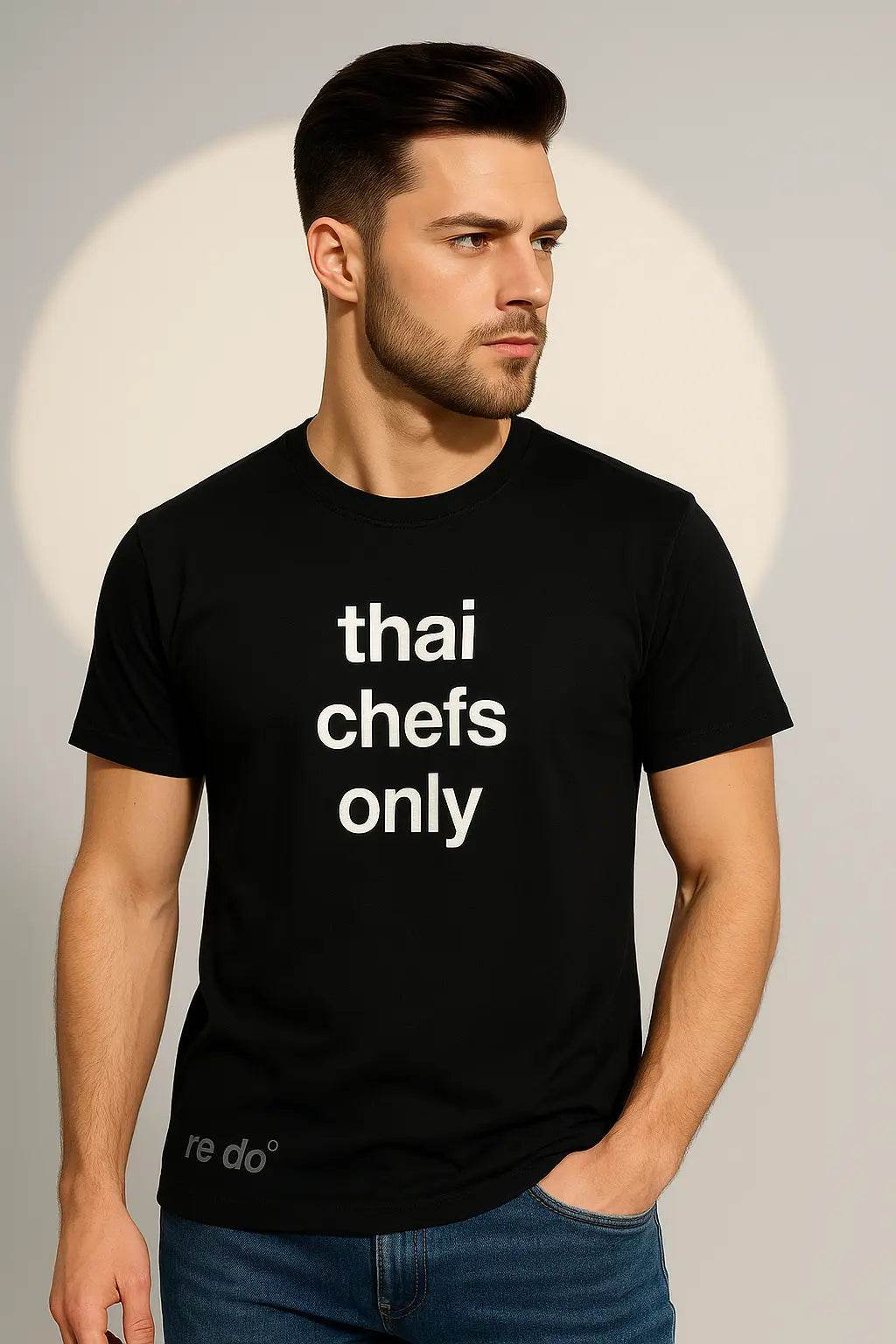 Discover the Trendy Black Graphic T-Shirt for Men – “Thai chefs only” Print