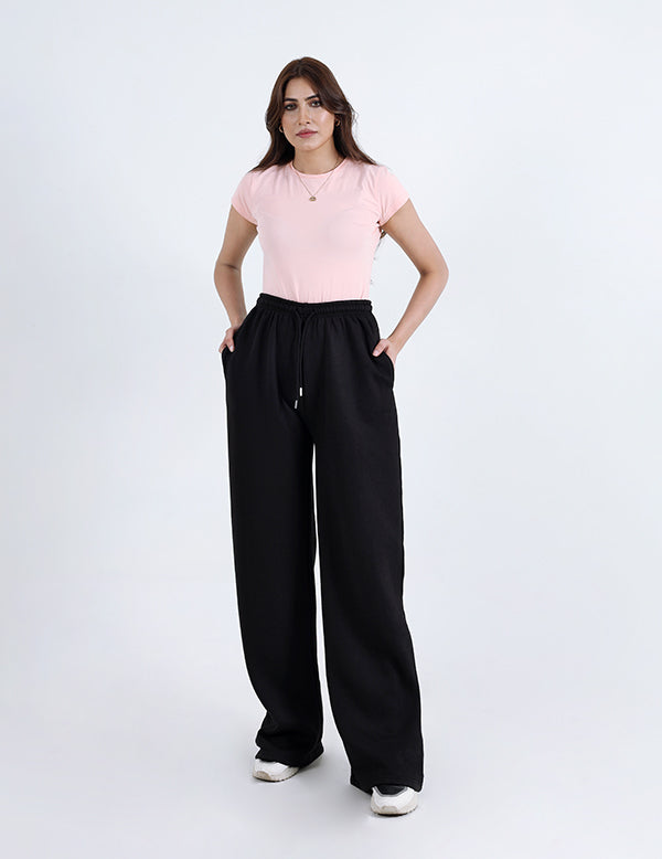 These black wide-leg sweatpants bring comfort and effortless style together. Made from soft, breathable fabric, they feature an elastic waistband with drawstrings for a perfect fit. Whether you’re lounging at home or heading out, their relaxed silhouette keeps you looking chic and feeling comfortable all day.