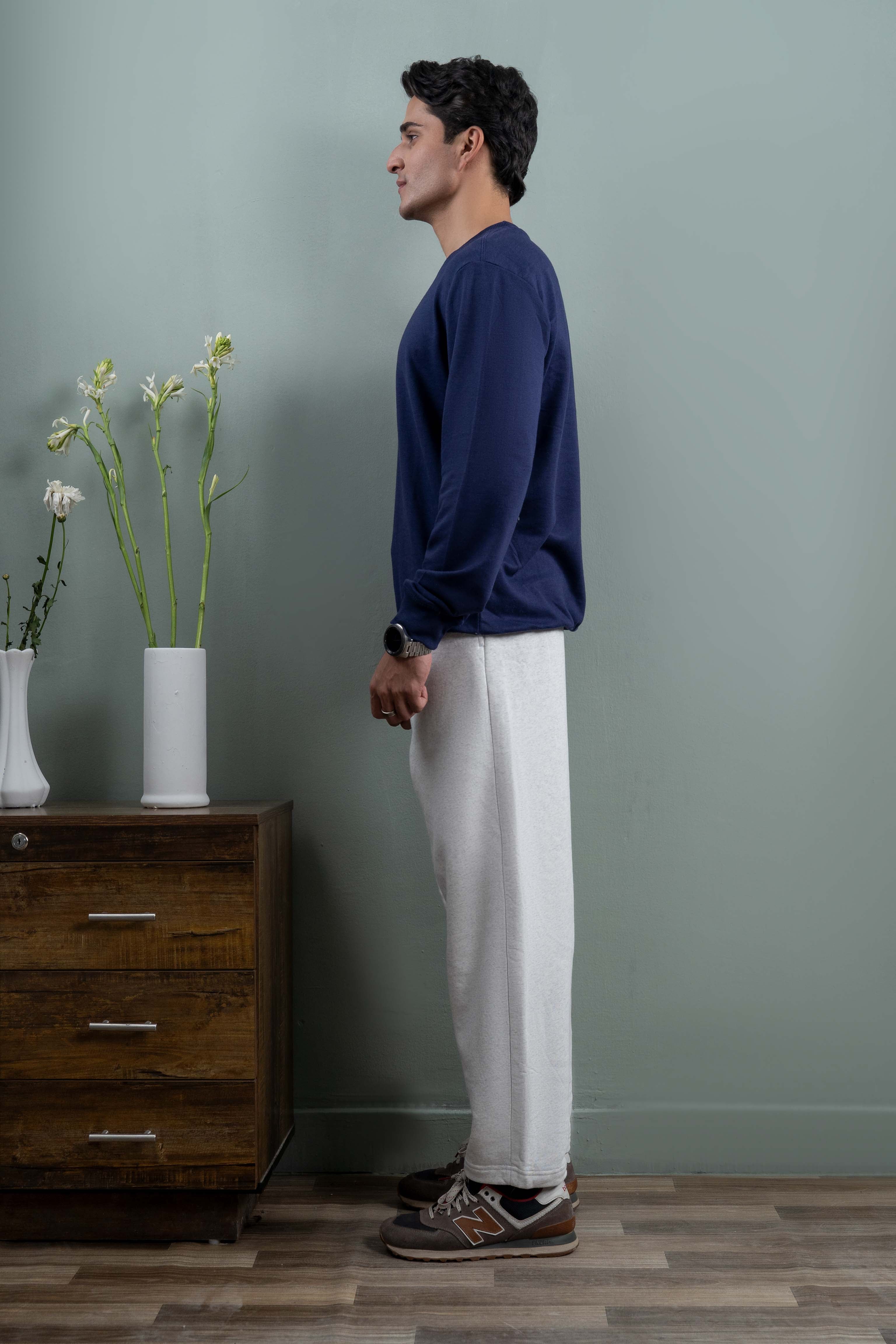 A clean two-piece set built for everyday comfort. The deep-blue full sleeve top pairs smoothly with soft grey joggers, making it easy to wear at home, outdoors or on a casual day out.