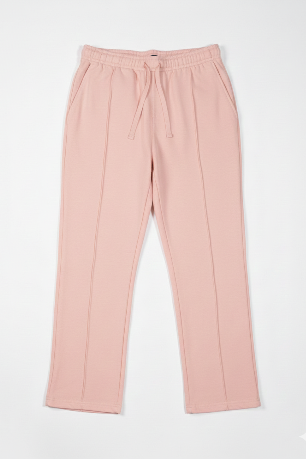 Lightweight Cotton Blush Pink Straight-Leg Lounge Trousers with Drawstring Waist