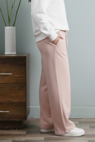 Lightweight Cotton Blush Pink Straight-Leg Lounge Trousers with Drawstring Waist