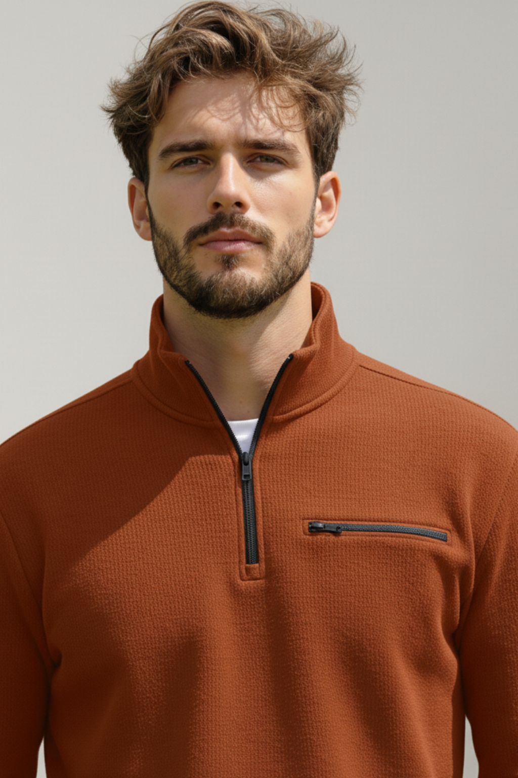 A perfect balance of style and comfort, this orange half-zip sweatshirt is designed for the modern man. The sleek zip-up collar and chest pocket detail give it a sharp, contemporary look, while the soft fabric ensures all-day comfort. Great for layering or casual wear.