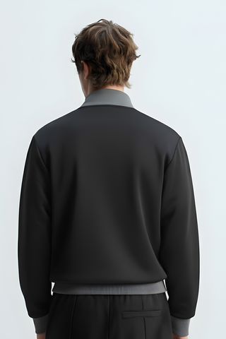 Classic Button-Neck Black Sweatshirt