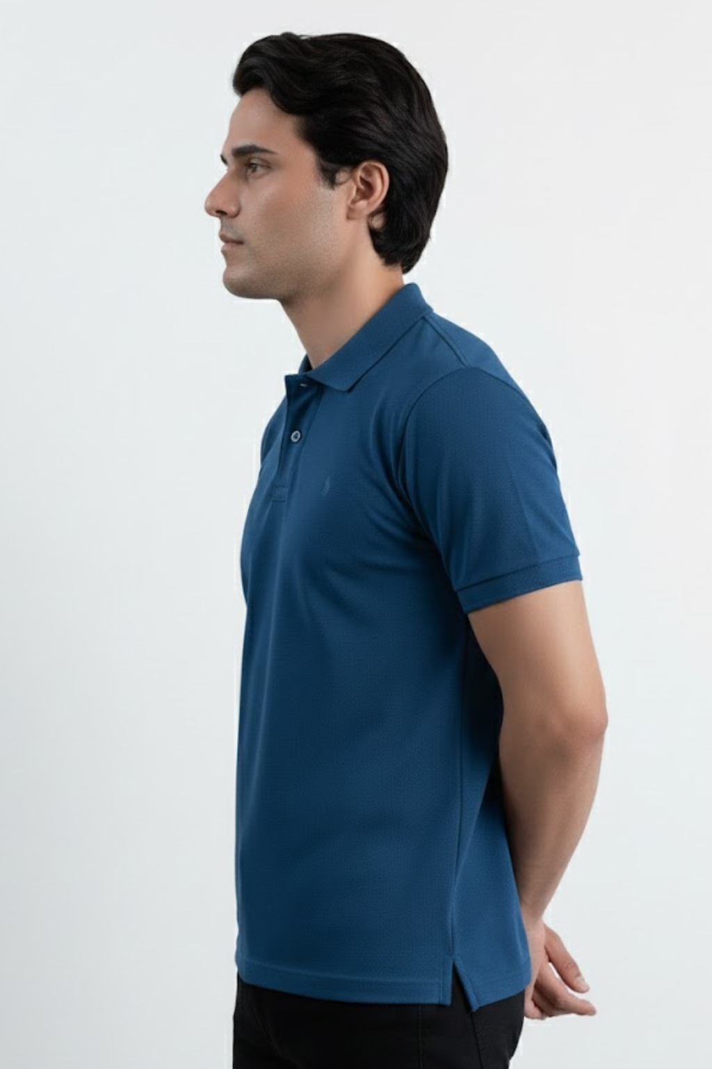 Classic Fit Polo Shirt for Men in Navy Teal Textured Fabric