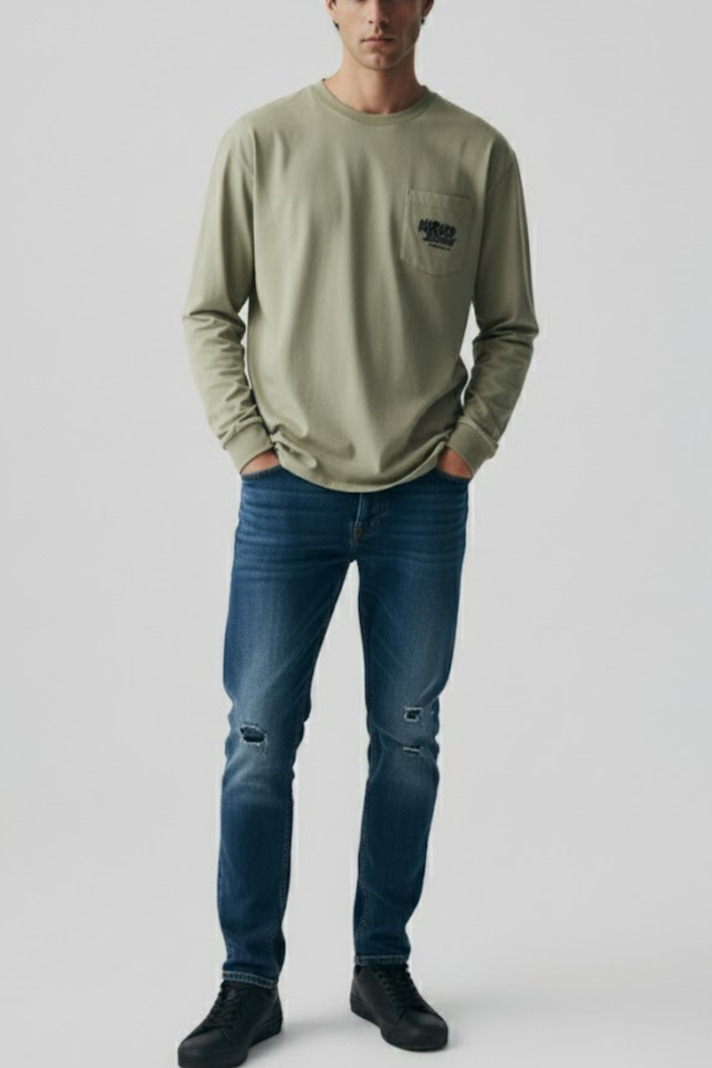 This sage green long sleeve tee gives a calm and clean look, perfect for everyday wear. The fabric feels soft and comfortable, making it easy to wear through the day. The chest pocket features a subtle Naruto graphic that adds a little character without being too bold. Pair it with jeans or joggers for a relaxed, effortless outfit.