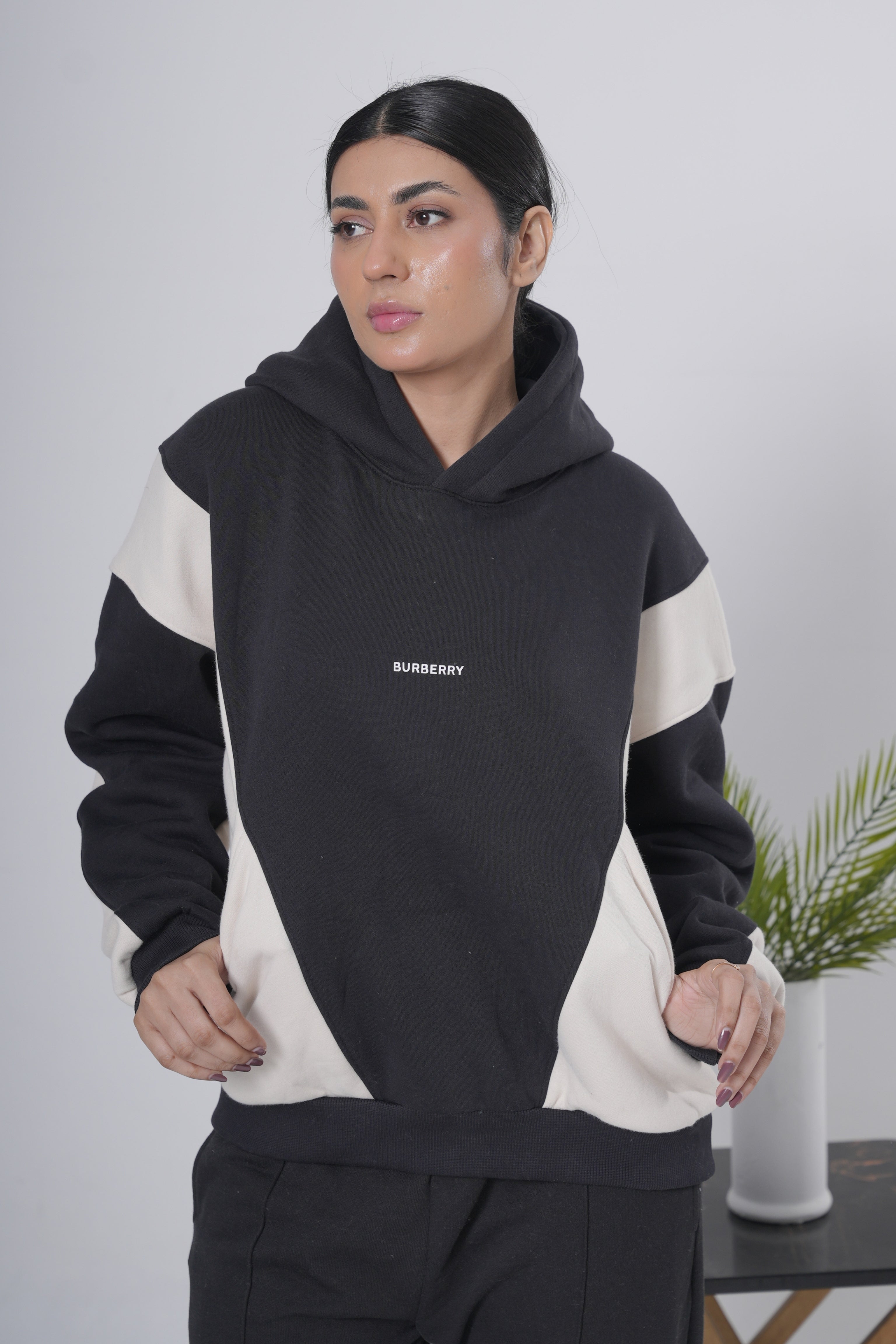 Black & Off-White Block Hoodie
