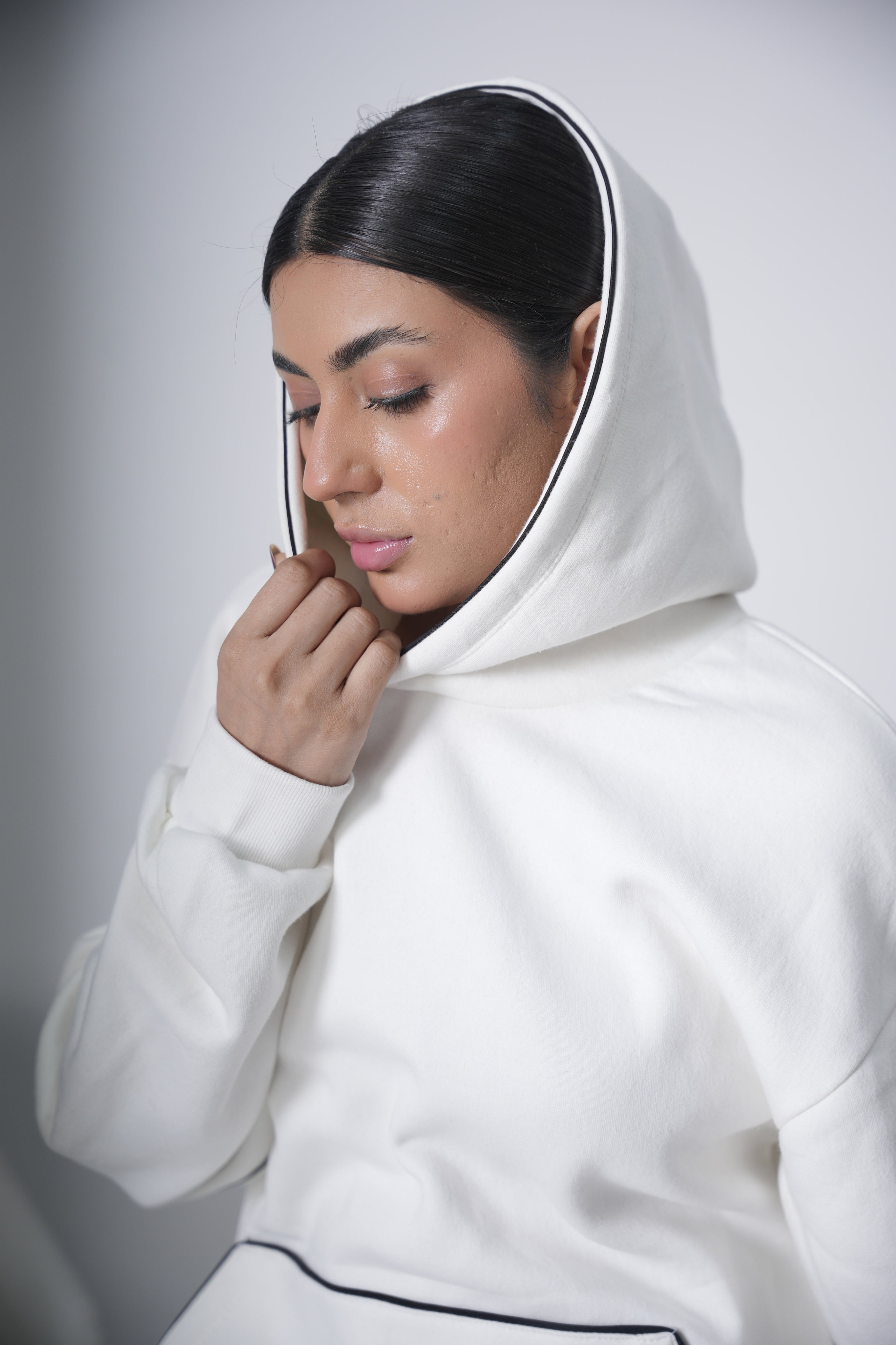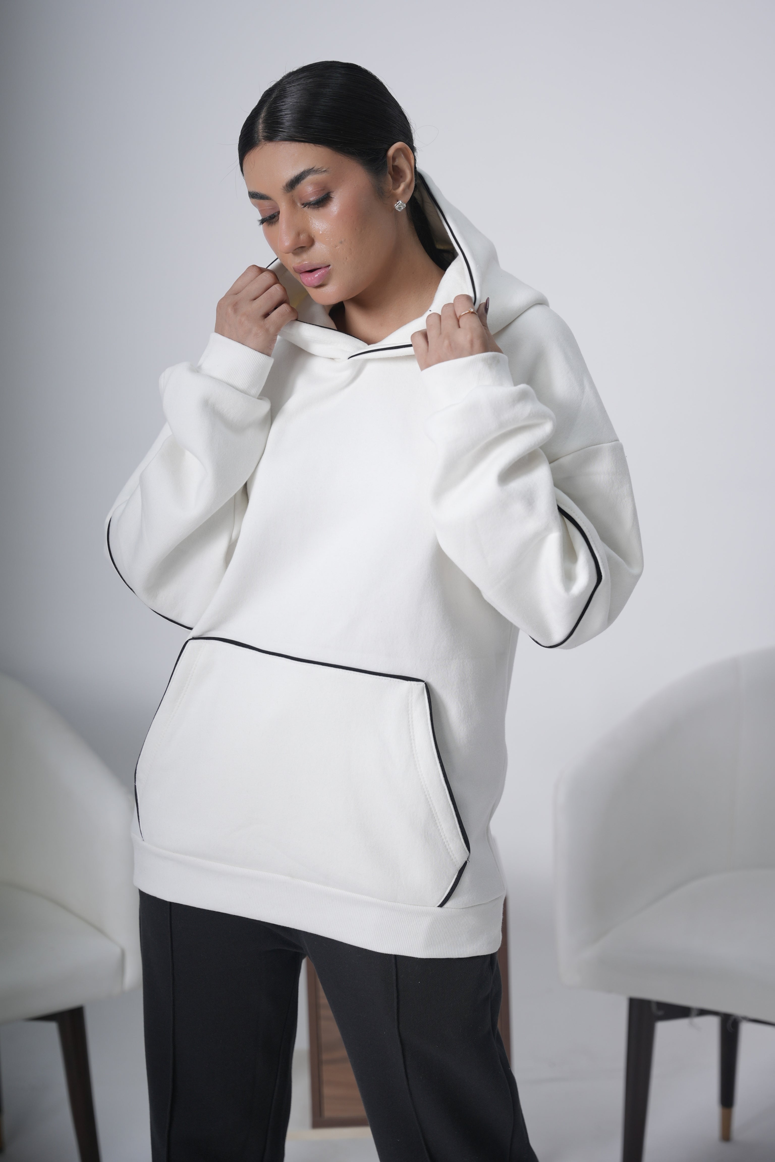Off-White with Black Piping Hoodie