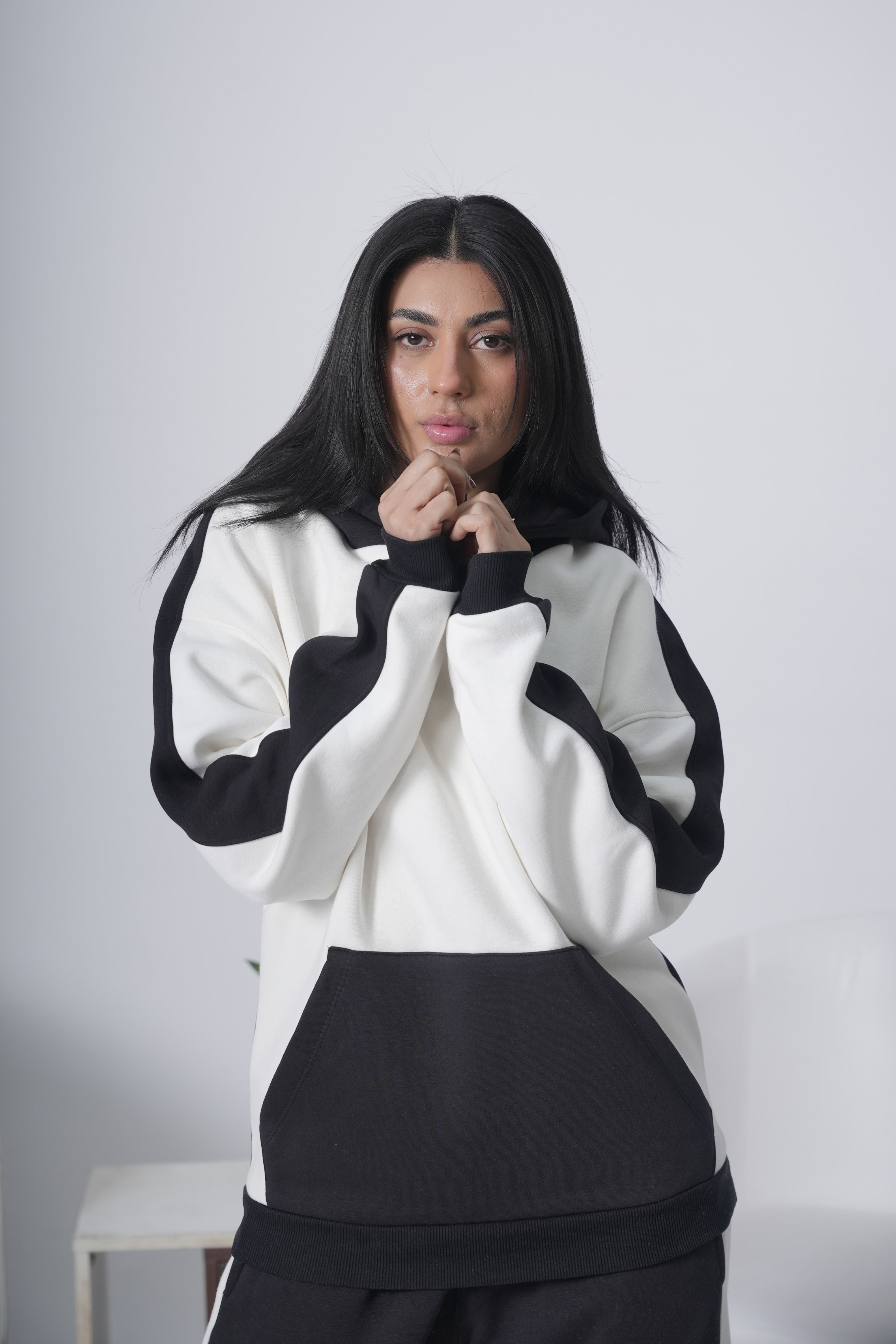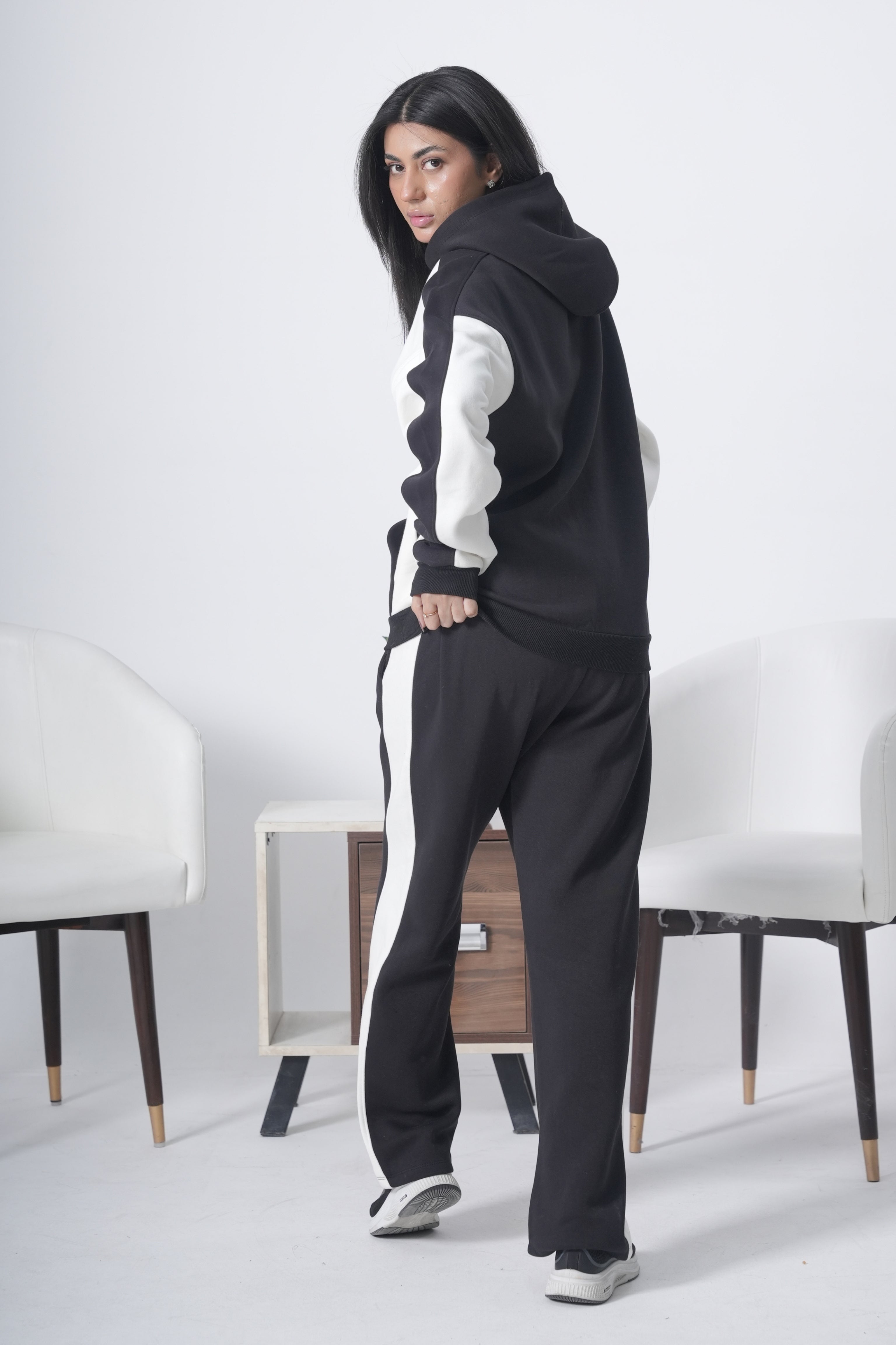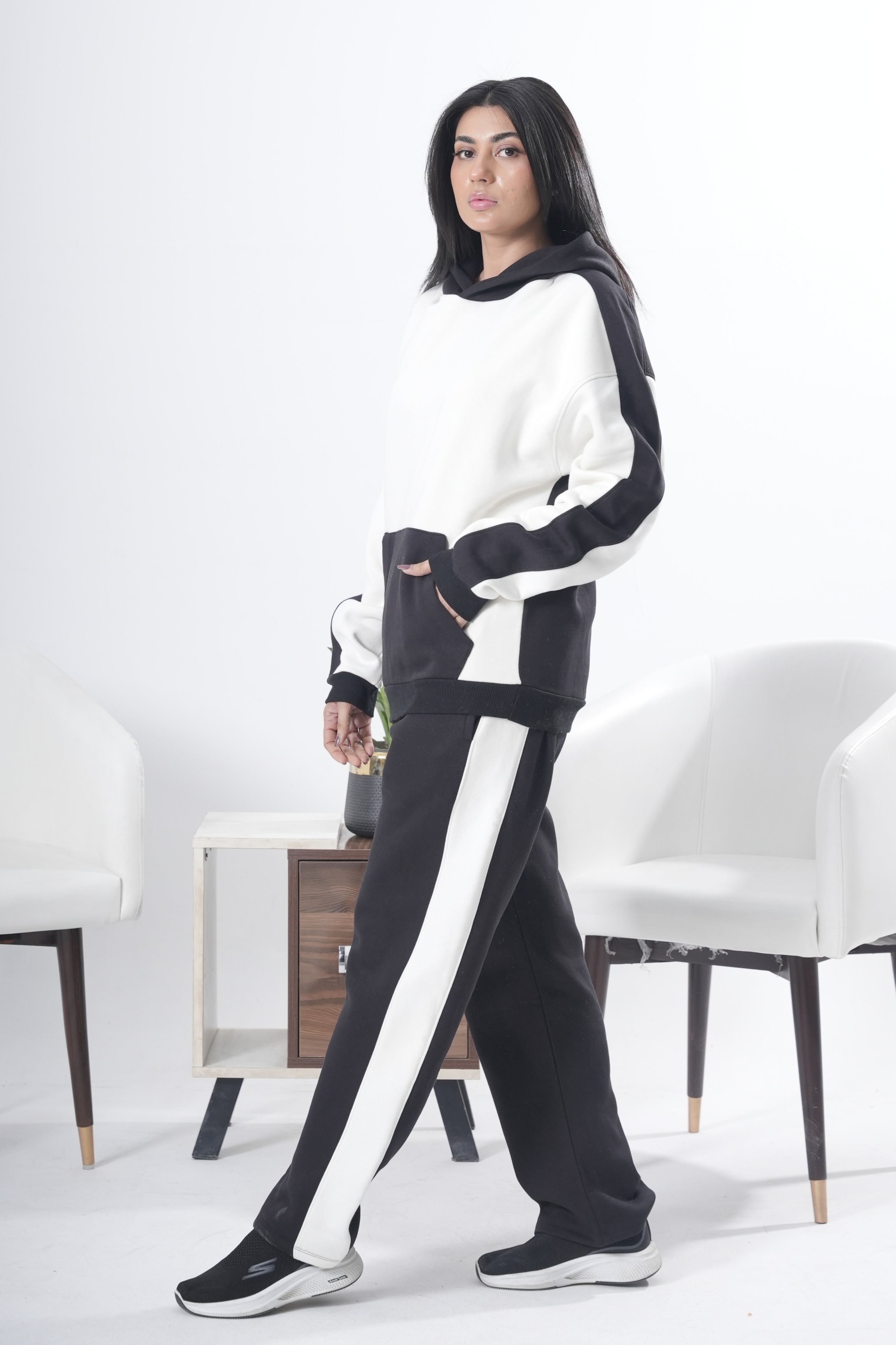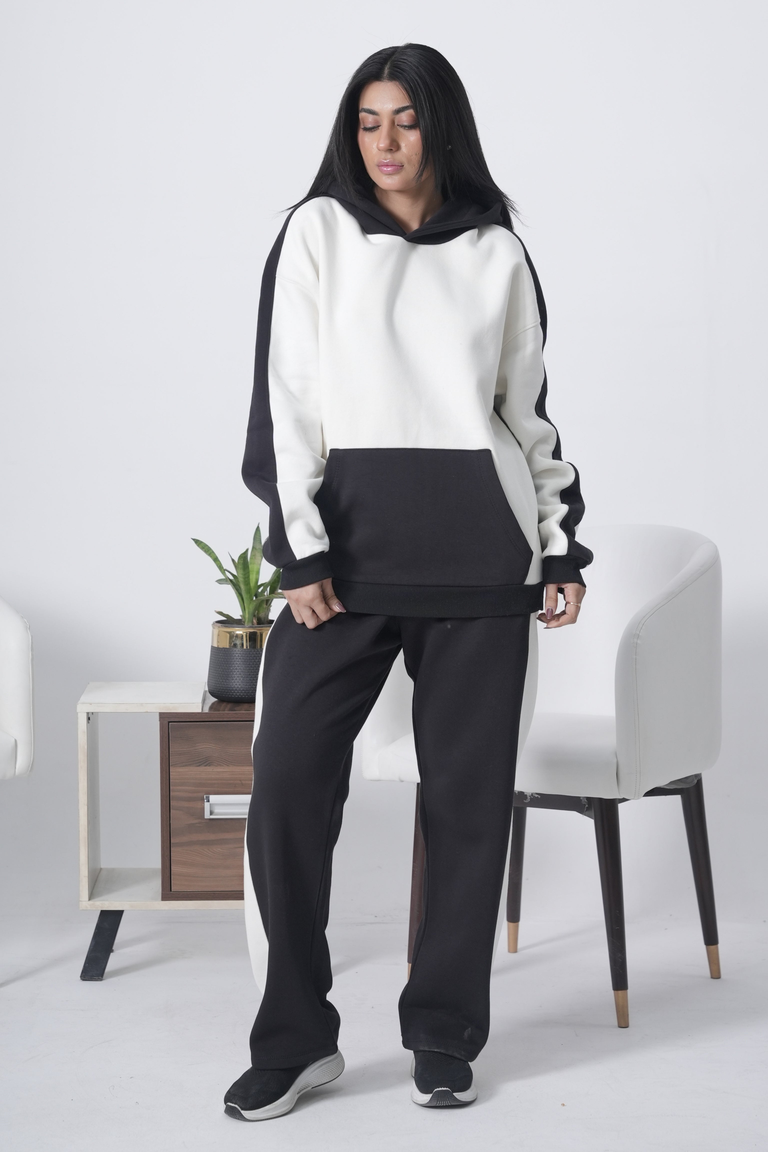 Upgrade your everyday wardrobe with this modern black and white hoodie tracksuit, designed for effortless comfort and style. Featuring a relaxed-fit hoodie paired with matching straight-leg pants, this set offers a clean contrast design that feels both sporty and contemporary. Made from soft, breathable fabric, it’s perfect for casual wear, lounging, travel, or off-duty days. A versatile essential that delivers comfort without compromising on style.