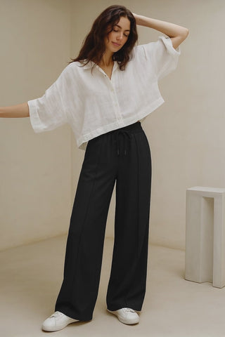 Shadow Luxe Wide-Leg Trousers - Black