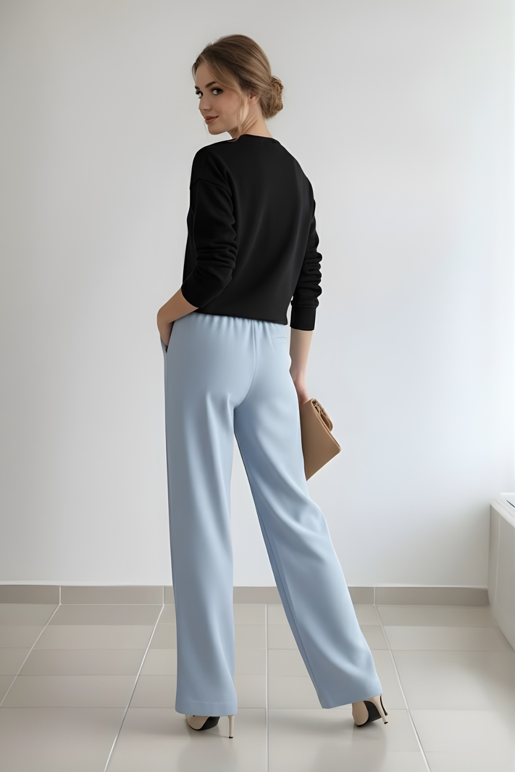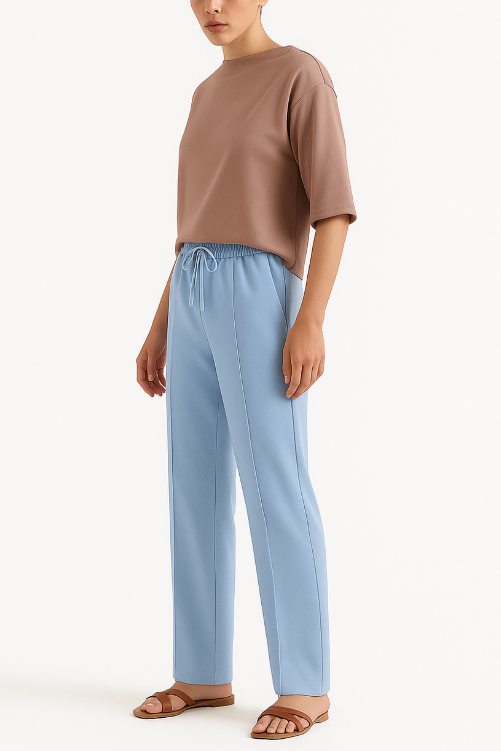 Serene Blue Flow Wide-Leg Trousers - Light Blue