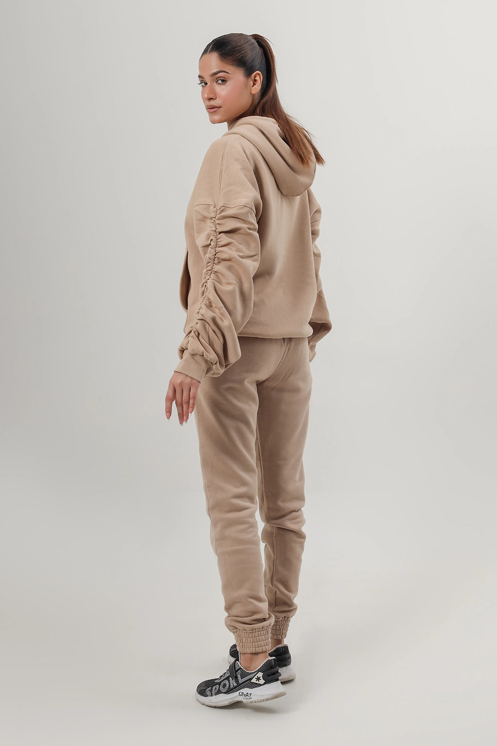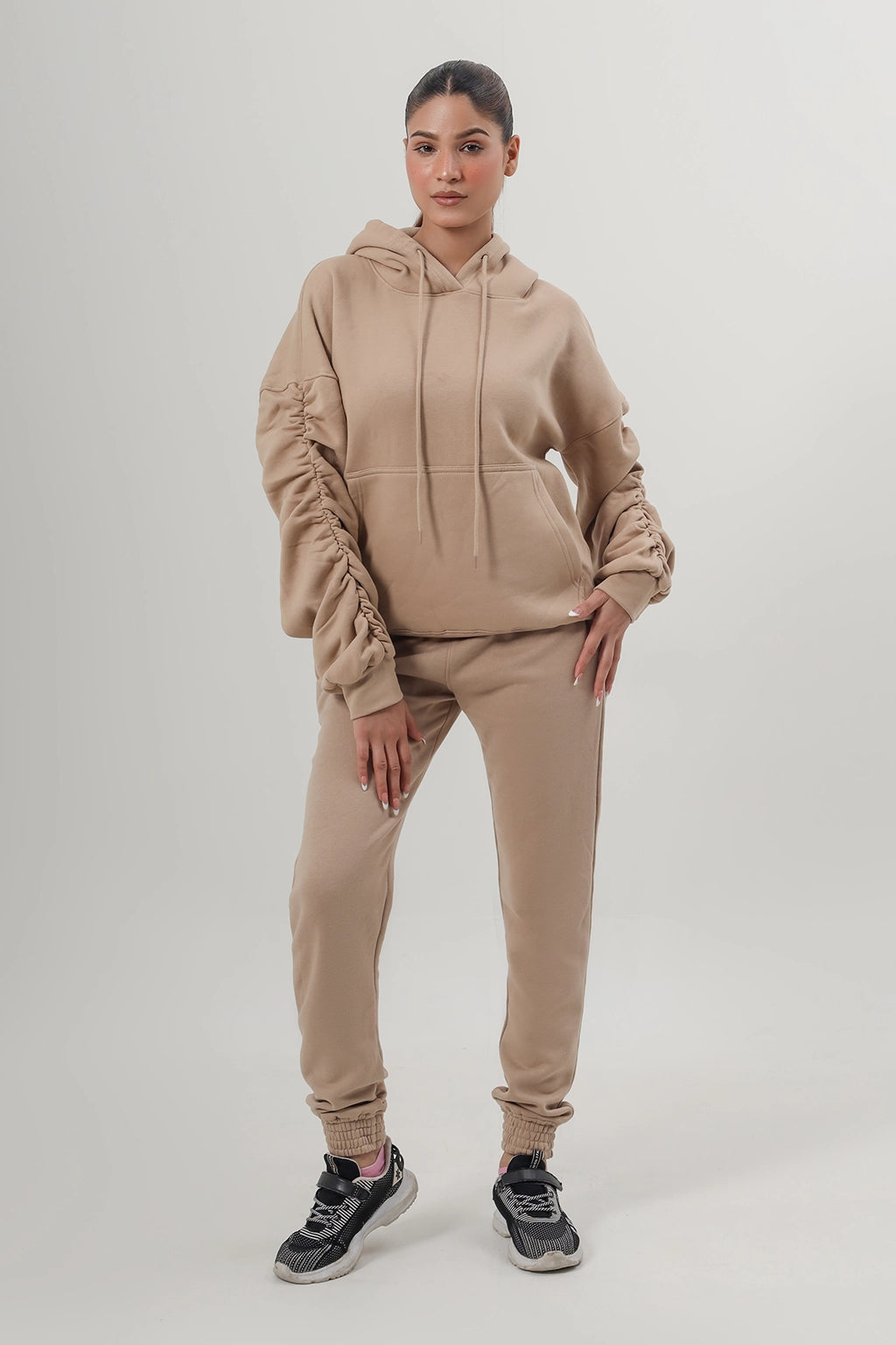 Keep it minimal and classy with this light beige full tracksuit set. Crafted from soft cotton-spandex fleece, it offers all-day comfort with a relaxed, modern fit. The cropped hoodie and matching joggers make it a perfect blend of style and ease. Ideal for casual wear, lounging, or travel days.
