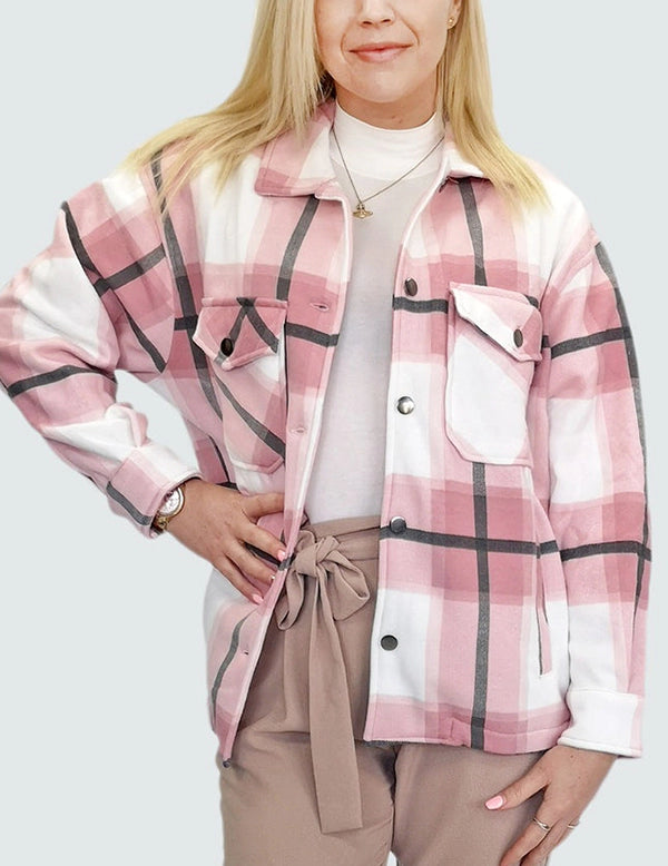Stay cozy and stylish with this soft fleece checkered jacket. Perfect for layering on chilly days, it combines warmth with a trendy oversized look.