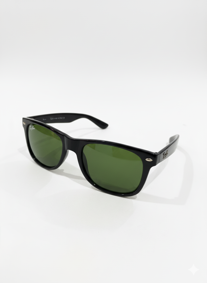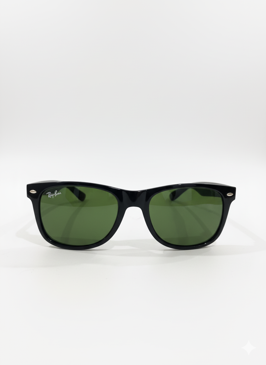 The Evergreen Classics are timeless shades with a sleek black frame and green lenses.